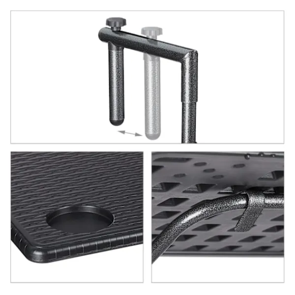 Förbättra din lilla balkong med ett hopfällbart kafébord designat för räckesfäste, som erbjuder justerbar höjd för mångsidig användning. Njut av mysiga utomhusstunder med praktiska dryckeshållare och plats för två.