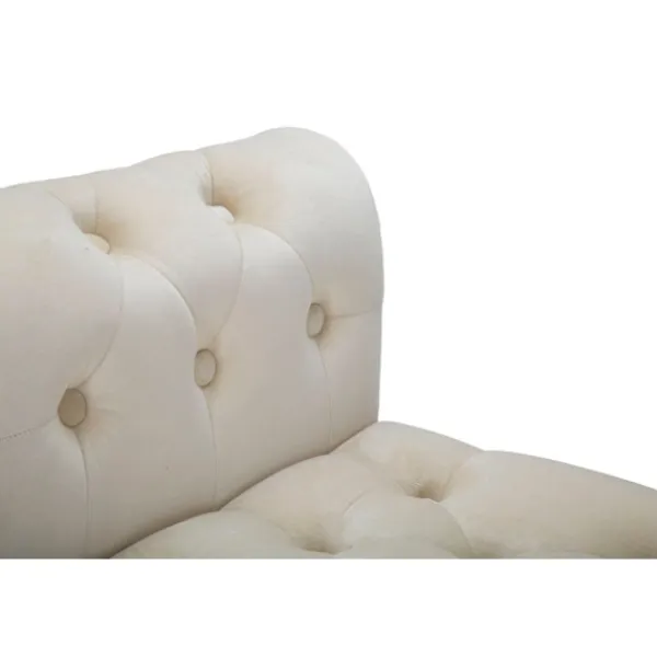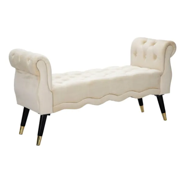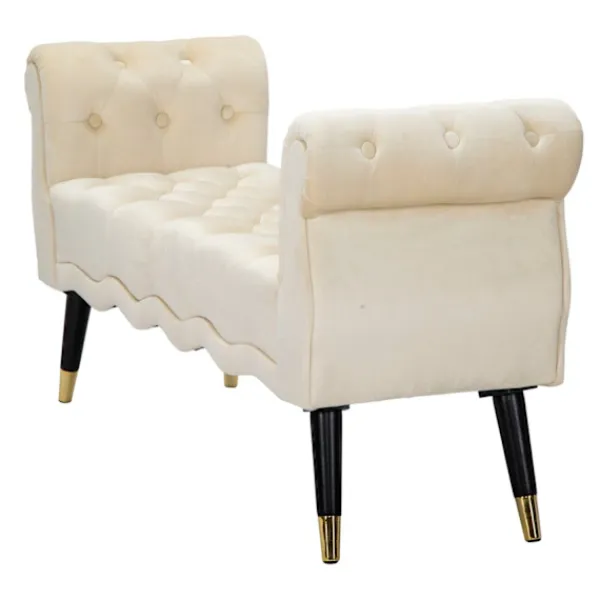 Denna krämfärgade bänk i trä och sammet förvandlar vilket utrymme som helst med sin lyxiga guldfinish och ger en touch av Hollywood-glamour till ditt sovrum eller vardagsrum.