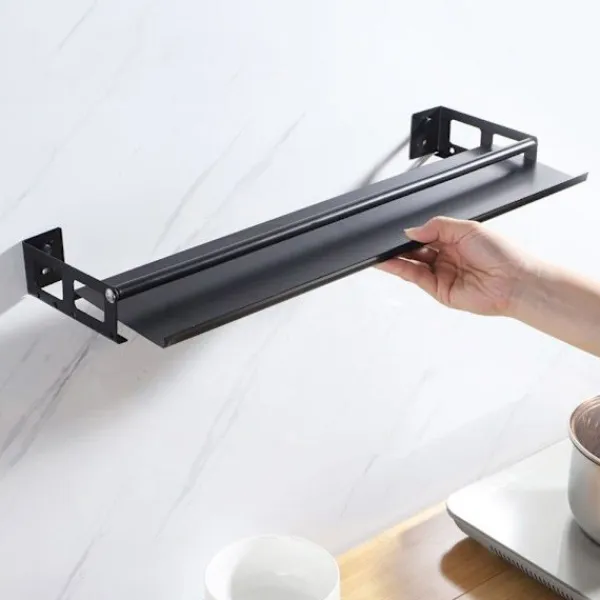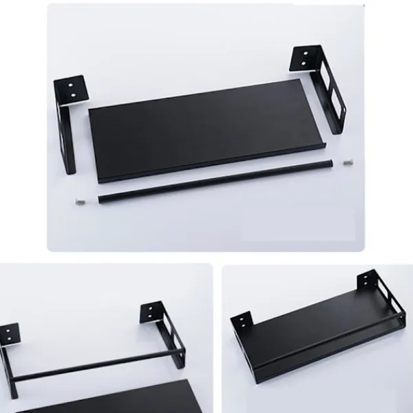Denna eleganta svarta vägghylla är perfekt för att organisera och förvara dina saker i köket, badrummet eller sovrummet. Den är tillverkad av hållbart svartlackerat stål och kan enkelt monteras med hjälp av skruvar. Använd den för att hålla ordning på kryddor, skönhetsprodukter eller smycken. Med sina mått på 20 x 12,5 x 5 cm tar den inte upp mycket plats, men ger ändå gott om förvaringsutrymme. Lägg till en touch av stil och funktionalitet i ditt hem med denna svarta vägghylla.