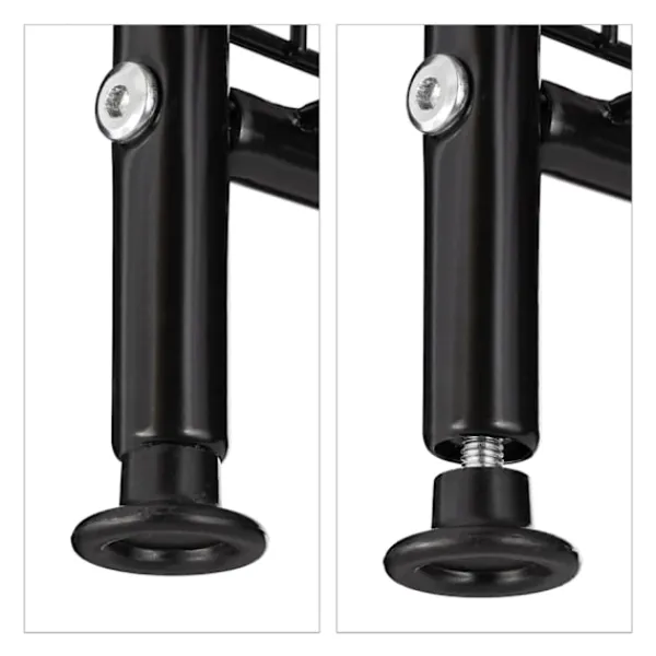 - Skydda golv med justerbara plastfötter som stabiliserar hyllan.