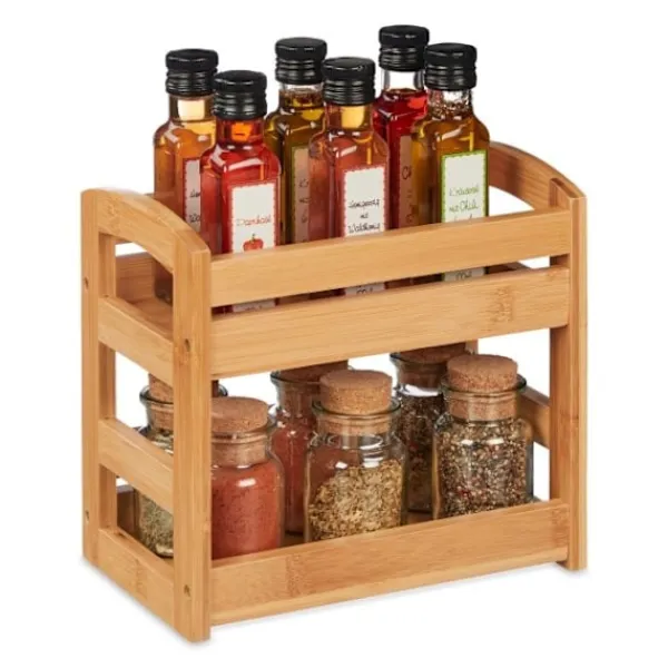 Bambukryddstället erbjuder en organiserad kökslösning med sin kompakta, miljövänliga design. Tillverkad av slitstark bambu förstärker den ditt köks estetik samtidigt som det maximerar bänkutrymmet.