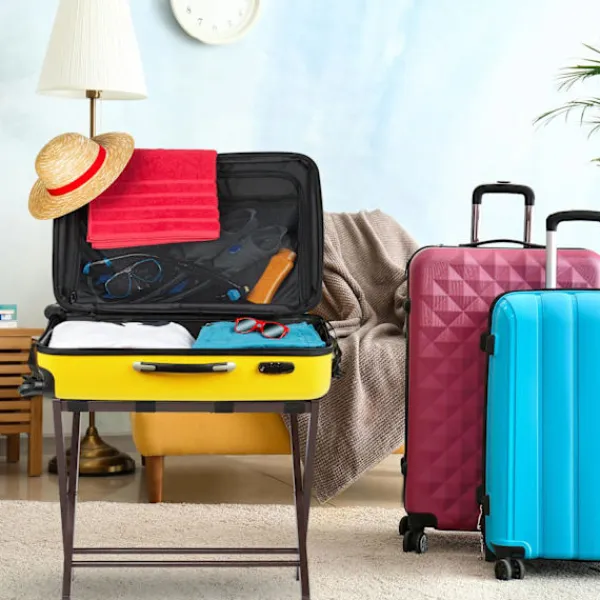 Vikbar bagagebänk förbättrar komforten genom att höja resväskorna för enkel packning och uppackning. Idealisk för hotell och hem, den här bänken skyddar din rygg när du hanterar tungt bagage.