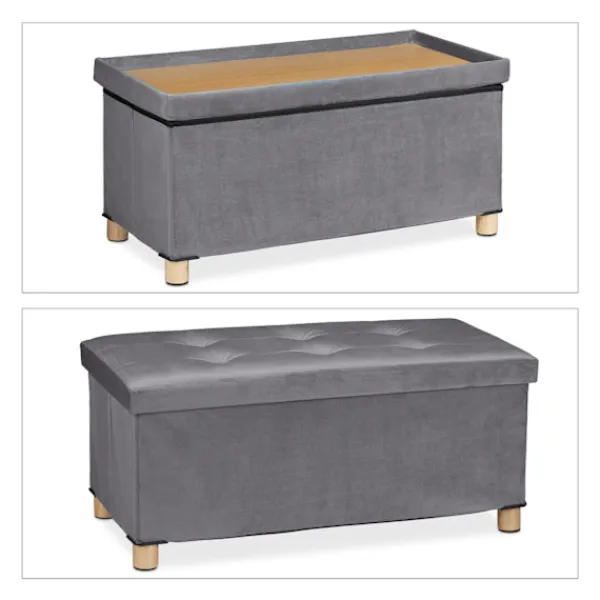 Vikbar bänk med träben erbjuder mysiga sittplatser och dold förvaring, vilket förbättrar alla rums funktionalitet. Denna mångsidiga bänk har mjuk sammetsklädsel och robusta träben för stabilitet.