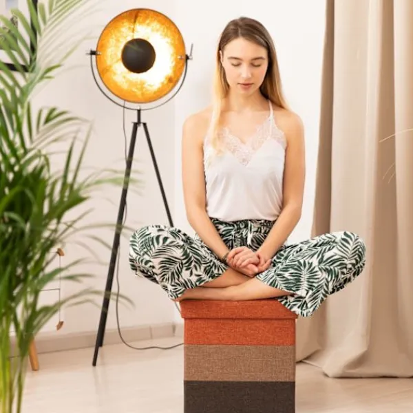 Den stoppade pallen erbjuder mysiga sittplatser och fungerar som en förvaringslösning, perfekt för extra gäster. Dess livfulla randiga design ger en dekorativ touch till alla rum samtidigt som den ger komfort med ett vadderat skydd.