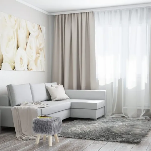 Förbättra ditt hem med en grå plyschpall som kombinerar rustik charm och modern stil. Denna mångsidiga pall har en mjuk sits i fuskpäls och ben i naturligt trä, perfekt för alla rum.