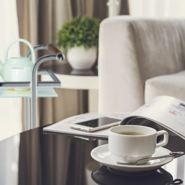 Den frostade serveringsvagnen förhöjer din matupplevelse med stil och funktionalitet. Dess rymliga hyllor och upphöjda kanter säkerställer säker transport av mat och dryck.