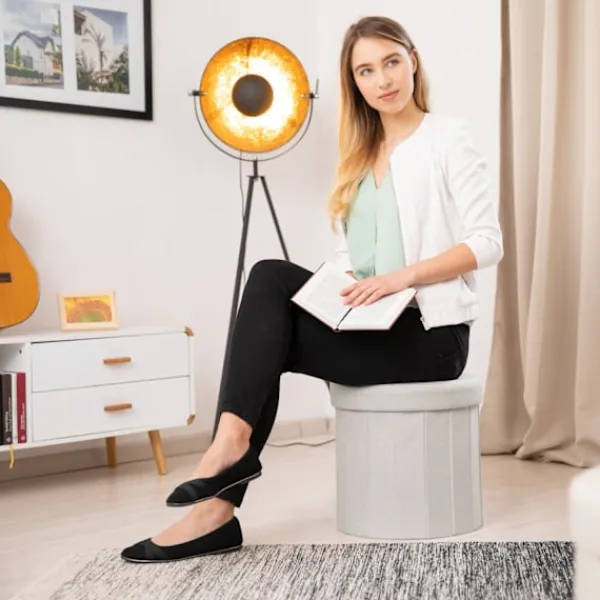 Vikbar pall med förvaring erbjuder dubbla funktioner och stil, vilket ger en bekväm sits och gott om förvaring. Få lätt åtkomst till dold förvaring för tidningar, filtar eller leksaker genom att ta bort locket.