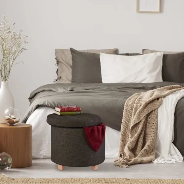 Stor stoppad pall med förvaringsutrymme förbättrar vardagsrums- och sovrumsorganisationen samtidigt som det ger en bekväm sittplats. Dess avtagbara lock avslöjar gott om förvaring för filtar, leksaker och mer.