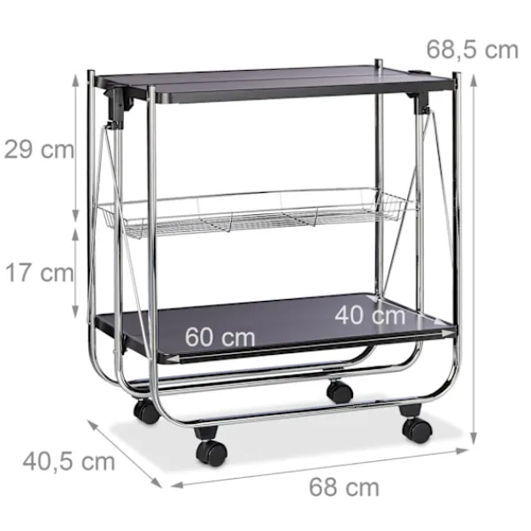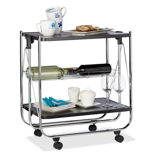Höj din hemtjänst med denna hopfällbara serveringsvagn i metall, designad för sömlös transport av mat och dryck. Dess vikbara design säkerställer platsbesparande förvaring, perfekt för alla rum.