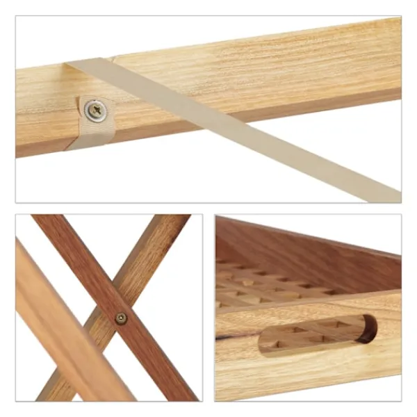 Detta fällbara brickbord är designat med användarvänlighet i åtanke. Den lätta konstruktionen gör det enkelt att flytta runt i hemmet, medan den stabila designen säkerställer att dina måltider alltid är säkra. Oavsett om du använder det som ett frukostbord i sängen eller som ett serveringsbord på balkongen, kommer detta brickbord att bli en oumbärlig del av din vardag. Dessutom, med sin naturliga träfinish och svarta metallben, tillför det en touch av elegans till vilket rum som helst.