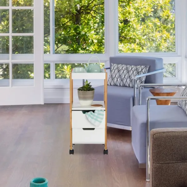 Utrymmesbesparande sidobord på hjul förbättrar hemmets organisation och stil. Denna mångsidiga köksvagn erbjuder en praktisk bricka för att transportera snacks och drycker, perfekt för vardagsrum och kök.