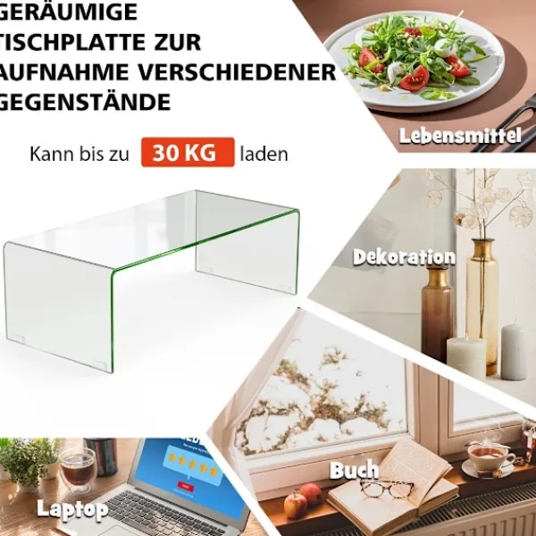 Detta eleganta sidobord i glas är tillverkat av härdat glas av hög hållfasthet och erbjuder en robust konstruktion som kommer att bli det fantastiska mittpunkten i ditt hem eller kontor. Med en viktkapacitet på upp till 30 kg är detta genomskinliga soffbord tillräckligt robust för att hålla din kopp, telefon och snacks, och hålla dem inom räckhåll. Dess värmebeständiga och vattenavvisande egenskaper gör den till en utmärkt förvaringsplats för mat och dryck utan risk för fläckar, och den är lätt att rengöra. För extra bekvämlighet kan du placera den vertikalt eller horisontellt för att fungera som sidobord, displayhylla, snacksbord eller nattduksbord i ditt utrymme. Denna enkla minimalistiska möbel kommer att vara det perfekta tillägget till alla rum, lämplig för vardagsrum, sovrum, kontor och mer.