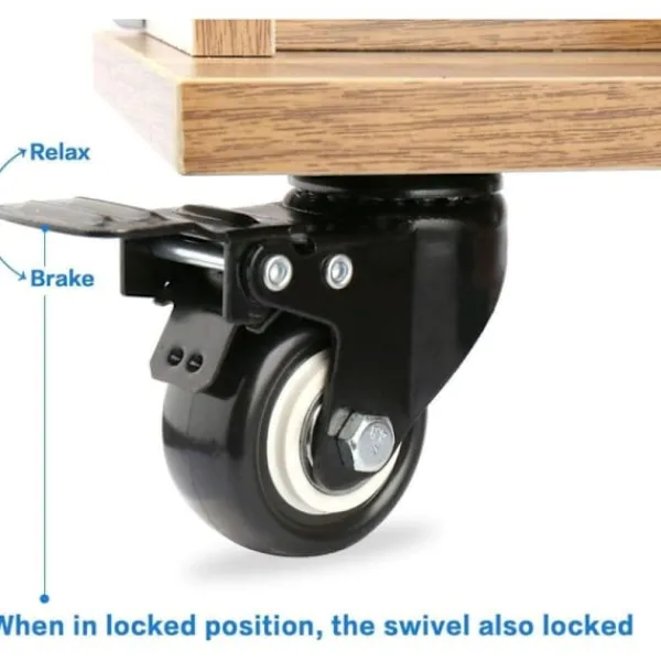 - 4 Svängbara hjul har bromsar, så att de kan låsas säkert och bekvämt, så du behöver inte oroa dig för att de ska rulla iväg.