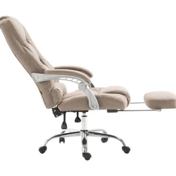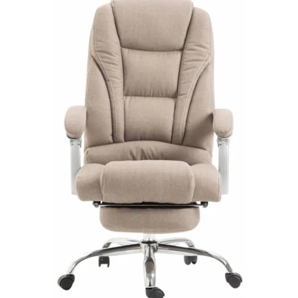 Kontorstol – Ren komfort!. Denna imponerande kontorsstol erbjuder inte bara ett elegant utseende utan också utmärker sig i komfort och hållbarhet. Den goda klädseln och underhållsvänliga tygklädseln med snygga smycken säkerställer en trevlig plats, även med långvarig användning. Tack vare den kontinuerligt justerbara sitthöjden erbjuder denna stol alltid ergonomiskt sittande. Det lätt justerbara fotstödet och ryggstödet ger en extra avslappnad paus där du kan luta dig tillbaka och sätta upp benen. Den är stabil på fem smidigt löpande hjul och en ram av metall i kromutseende. Oavsett om de är hårda golv eller mattor kan du alltid rulla smidigt och enkelt över golvet .. Materialkomposition: 100% polyester. Mått:. Total höjd: 118 – 127 cm. Total bredd: 68 cm. Totalt djup: 64 cm. Sitshöjd: 47 – 56 cm. Sät: 55 x 50 cm. Höjd ryggstöd: 74 cm. Höjd armstöd: 66 – 75 cm. Maximal belastningskapacitet: 150 kg. Session:. Klädsel: tyg. Styliskt sömnad säte. Sittande bekvämt tack vare högkvalitativ klädsel. Ram:. Material: Metall i kromutseende. Justerbar i höjd och roterbar. Inklusive 5 smidigt löpande hjul. Detaljer :. Modern design. Snygga smycken. Kontorsstol med integrerat fotstöd. Underhållsinstruktioner:. Ta bort ljusföroreningar med en fuktig bomullsduk. Förstå med en torr trasa. Använd inte hushållens rengöringsagenter