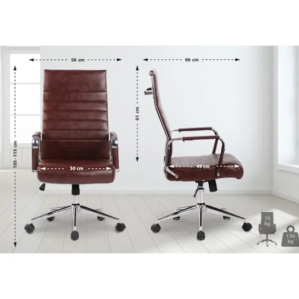 Denna exklusiva Ergonomic Office -ordförande sticker ut för sitt moderna utseende och oöverträffad komfort. Högkvalitativt klädsel och en lättvårdskonstruktion läder erbjuder en fantastisk sittupplevelse. En ergonomisk hållning garanteras med den oändligt justerbara sitthöjden. Också utrustad med en lutningsmekanism för extra rörelsefrihet. Den snygga kromramen och robusta armstöd med konstgjord läderfinish slutför hela. The structural elements are made of metal in chrome look for maximum stability.