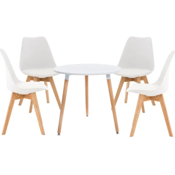 Denna matsalsset kombinerar stilfullt ett rundbord med fyra stolar. Perfekt för att skapa en bekväm atmosfär i matsalen, köket eller vardagsrummet.