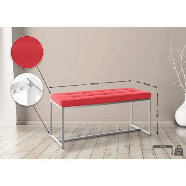Smarta och flexibla sittmöbler. Vår soffa erbjuder en bekväm, klädd sittupplevelse individuellt och kan vara stilfullt integrerad i alla rum. Tack vare den ursprungliga och enkla kombinationen med en matchande ottoman är denna soffa särskilt användbar för olika applikationer. Oavsett om det är en intim miljö eller ett speciellt tillfälle, är de kreativa möjligheterna obegränsade. Välj från vår tillgängliga färgpalett för perfekt anpassning till din stil och preferenser .. Materialkomposition: 100% polyuretan. Ca. Mått:. Total bredd 100 cm. Total höjd 48 cm. Totalt djup 40 cm. Sitshöjd 48 cm. Vikt 14 kg. Session:. Klädsel: Artificiellt läder. Sitt väl och bekvämt klädd. Stilfullt sömnad och täckt. Chassi:. Material: rostfritt stål. Stabila fyra -legs chassi. Detaljer :. Exakt finish. Utmärkt material. Stabil konstruktion och slitstödande klädsel. Bekväm är även efter flera timmar. Underhållsinstruktioner:. För rengöring rekommenderar vi en bomullsduk, fuktad med ljummet vatten. Använd inte hushållens rengöringsagenter. Bara suga ytor med ett lämpligt munstycke