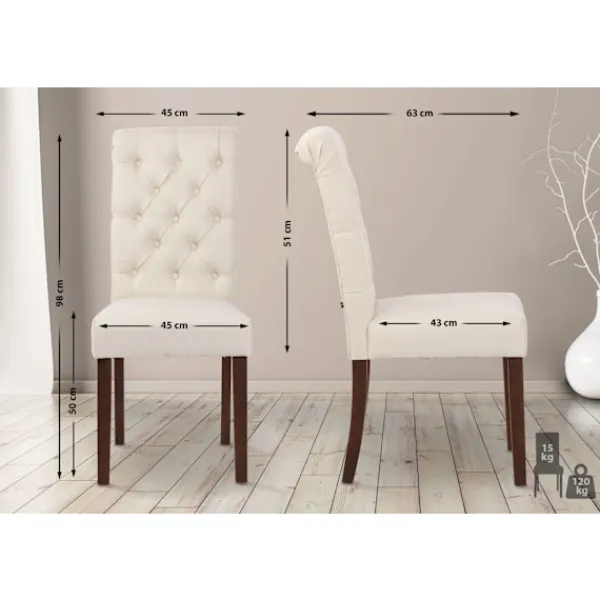Matsalstol. Matsalstolen erbjuder en inbjudande och robust plats som elegant smälter samman till ett traditionellt möblerat utrymme. Tack vare det höga ryggstödet och det bekväma klädseln garanteras långvarig sittplatskomfort. Stolen är stabil på en fyra -gummig ram av gummihout. Med golvskyddarna på benen förhindrar du repor på golvet. Dessutom kan matsalstolen rengöras enkelt och snabbt av underhållsvänliga material .. Materialkomposition: 100% polyester. Dimensioner ca. :. Total höjd: 98 cm. Total bredd: 45 cm. Totalt djup: 63 cm. Sitshöjd: 50 cm. Sätet (BXD): 45 x 43 cm. Höjd ryggstöd: 51 cm. Max. Lastkapacitet: 120 kg. Vikt: 15 kg. Session:. Klädsel: Velvet. Klädsel: tyg. Trevlig sittande position tack vare ryggstöd. Chassi:. Material: trä. Stabil fyra -gegged ram. Noggrann design för säker stabilitet. Detaljer :. Modernt utseende i kombination med optimal komfort. Vara bekväm i flera timmar. Hållbart och underhåll -vänligt klädsel. Underhållsinstruktioner:. Ta bort ljusföroreningar med en fuktig bomullsduk. Ytor endast dammsugar med en lämplig fästning. Använd inte hushållens rengöringsagenter