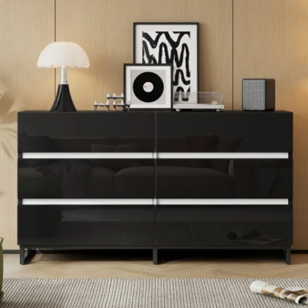 Lätt att installera och underhålla: Installationsprocessen är enkel, det dagliga underhållet är enkelt och den lättrengjorda, högblanka panelen säkerställer att sideboardet förblir vackert och städat under lång tid, vilket gör ditt liv hemma bekvämare.