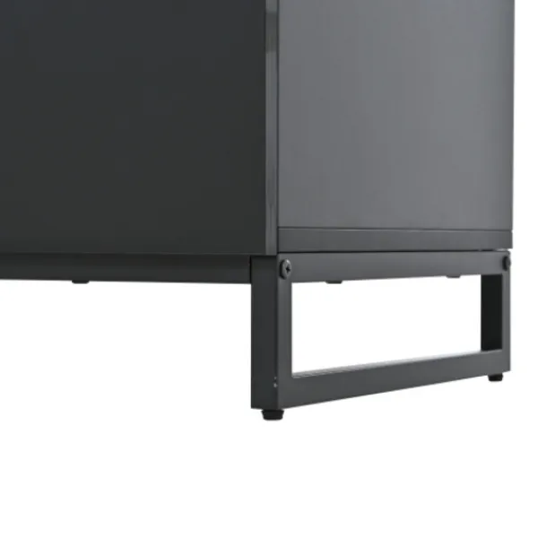 Stabil stödstruktur: Tre metallbensramar ger säkert stöd för hela skåpet. Med en rekommenderad viktkapacitet på 60 kg är sideboardet stabilt och säkert när föremål placeras på det.