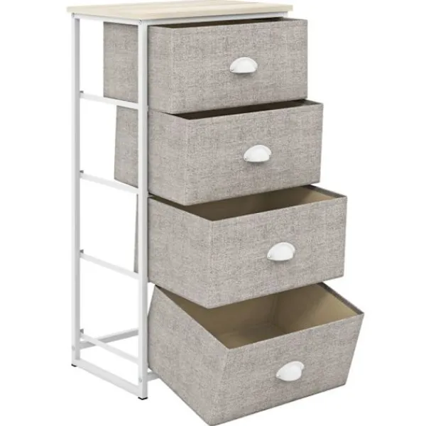 COSTWAY Byråer>Kommod med 4 Tyger, Träskiva, Metallhandtag och -ram, för Vardagsrum, Kontor, Skåp,