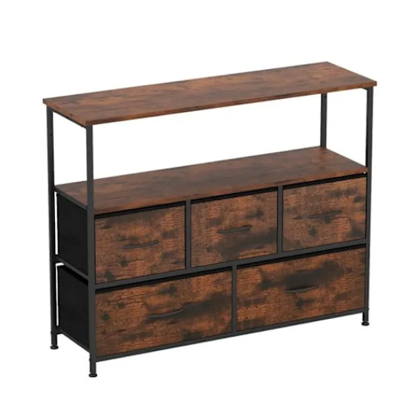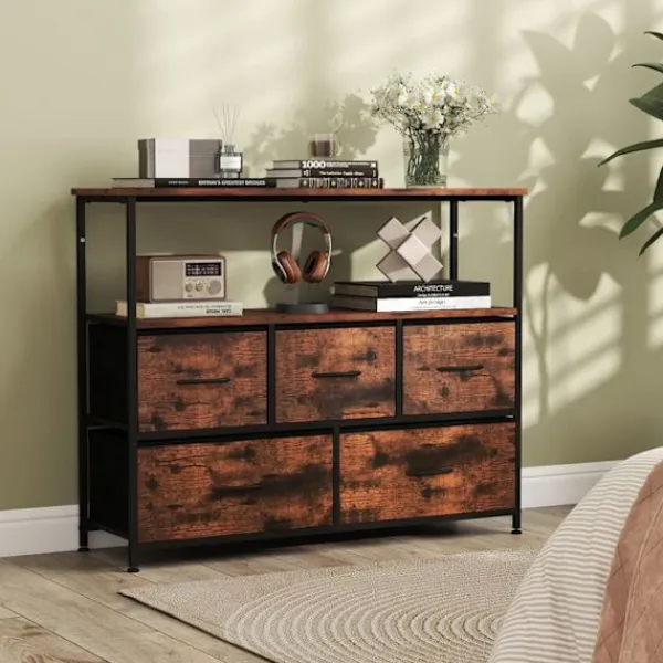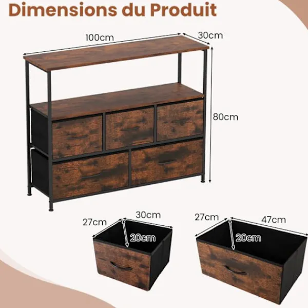 Bli först med att recensera ”COSTWAY Byråer>Kommod med 5 Lådor, Tyg med 2 Öppna Hyllor och Metallram för Sovrum, Vardagsrum, Korridorer, Entréer, Brun” Avbryt svar