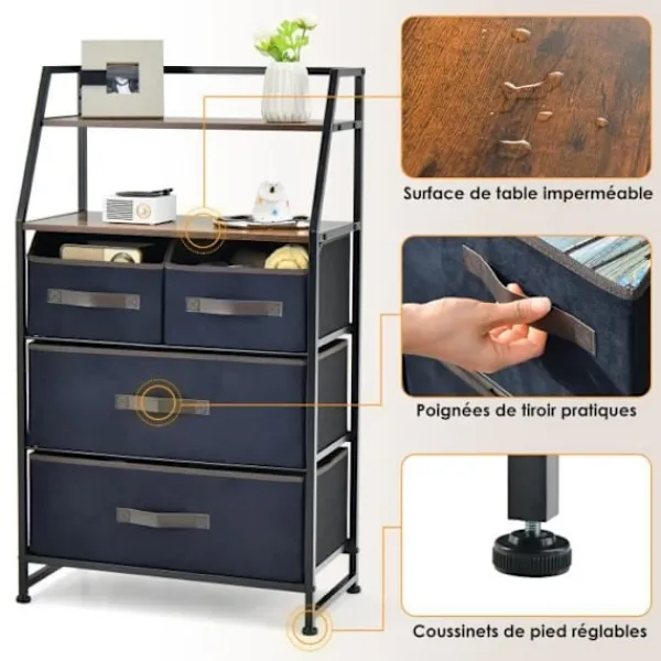 COSTWAY Byråer>Kommod med 4 Tyger, Träskiva, Metallhandtag och -ram, för Vardagsrum, Kontor, Skåp,