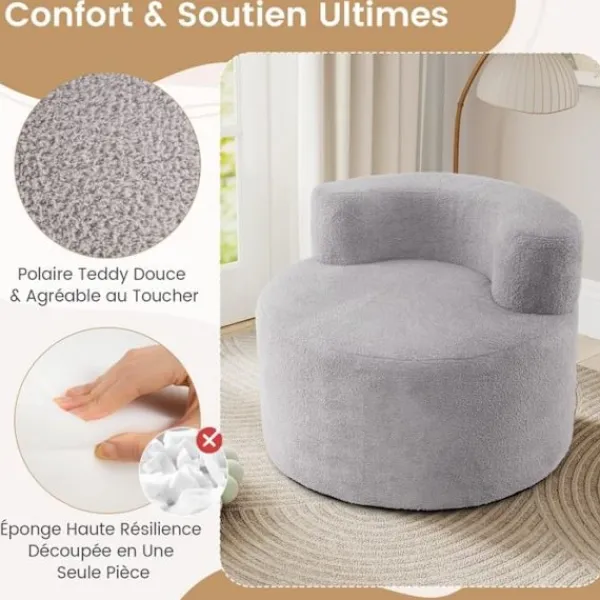 Upptäck komforten hos denna runda puff. Dess utsida i mjuk plysch och insidan i högpresterande skum, tillverkat i ett stycke, erbjuder ett stabilt stöd. Designad för optimal avkoppling, har denna cirkulära puff en rygg i form av en halvmåne, perfekt för att läsa, titta på filmer eller bara koppla av. Dess halkfria bas säkerställer god stabilitet på alla ytor, medan dess avtagbara och tvättbara överdrag gör rengöringen enklare. Klar att använda, utan montering, behöver den bara 24 till 48 timmar för att återfå sin ursprungliga form.