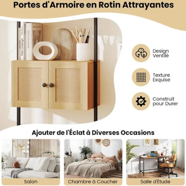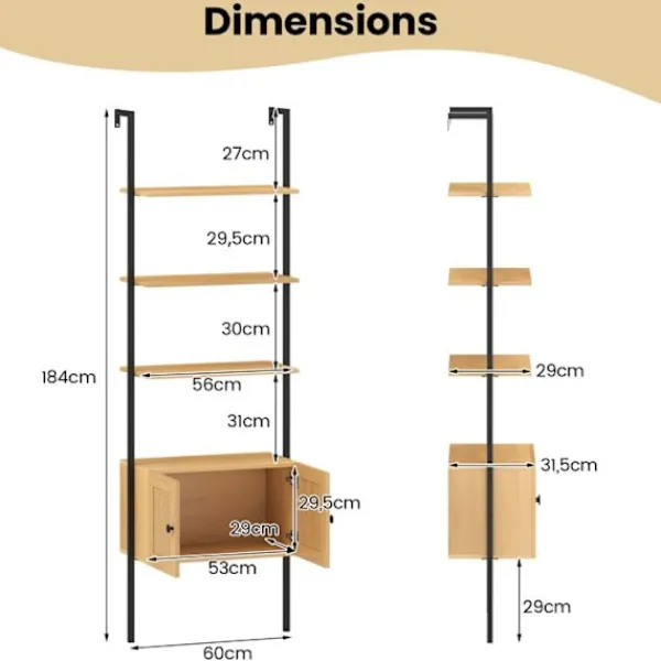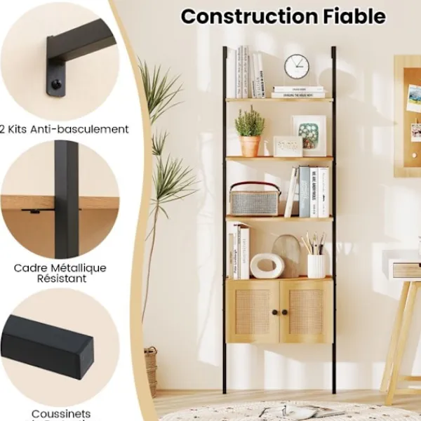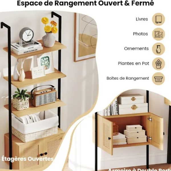 >Bibliotek med 5 nivåer och skåp för att hålla ditt hem organiserat
