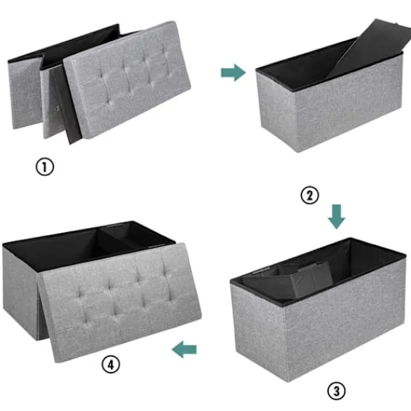 Allier elegans och praktiskhet, vår vikbara förvaringspuff är det perfekta valet! Strukturen är av högkvalitativ MDF, vilket garanterar en hög belastningskapacitet utan deformation. Dessutom erbjuder det mjuka tygöverdraget och den tjocka stoppade sitsen en bekväm sittplats. Det stora inre förvaringsutrymmet, utrustat med en hängande låda, gör det möjligt att förvara kläder, filtar, skor och andra vardagsföremål. Utrustad med en detaljerad bruksanvisning monteras denna sängbänk snabbt och kan enkelt vikas ihop när den inte används, för minimal platsanvändning.