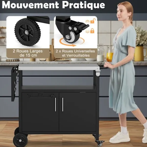 >Lätt att flytta med 2 stora hjul och 2 låsbara hjul
