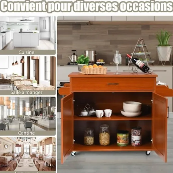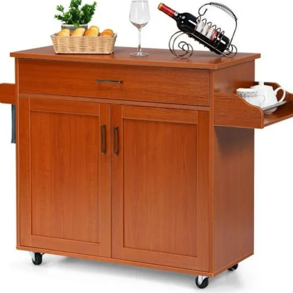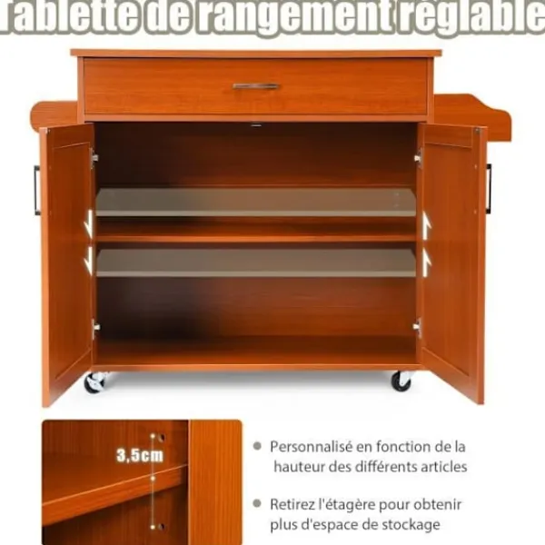 Vår COSTWAY köksvagn på hjul är en bra förvaringsenhet för ett snyggt kök. Med en rymlig bänkskiva, en stor låda, ett skåp, ett kryddställ och ett handduksställ, ger denna vagn gott om förvaringsutrymme för disk, bestick, glas, mat, etc. Med sin 3-vånings justerbara hylla kan du anpassa avståndet efter dina behov för enkel förvaring av föremål i olika storlekar.