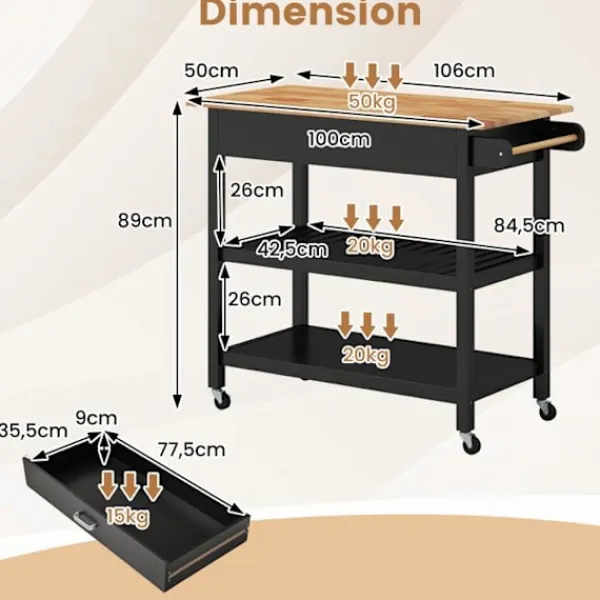 >Lätt att flytta tack vare 4 universella hjul (2 med bromsar)