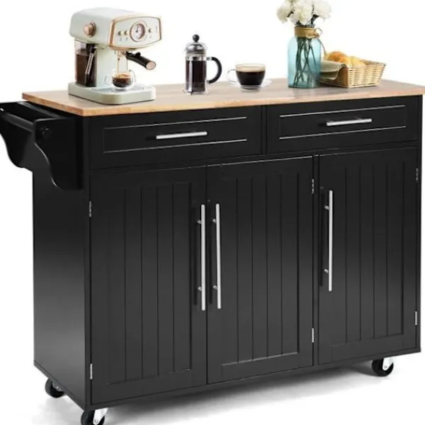 Bli först med att recensera ”COSTWAY Köksö>köksvagn/vagn, köksö med knivhållare, handduksställ, 3 dörrar och 2 lådor, svart” Avbryt svar
