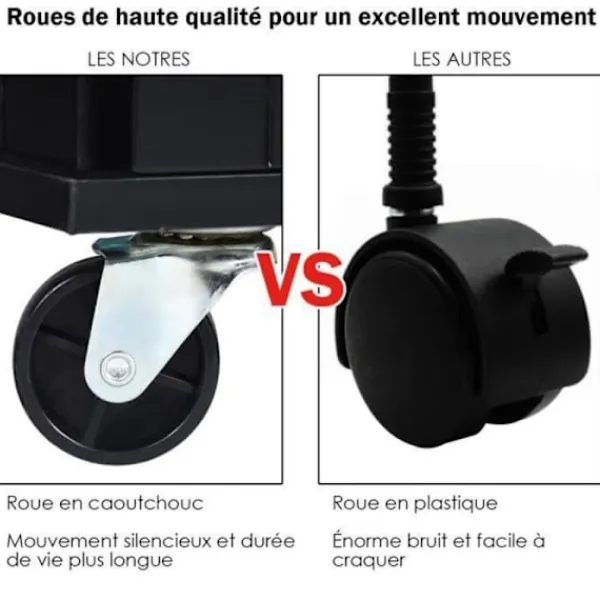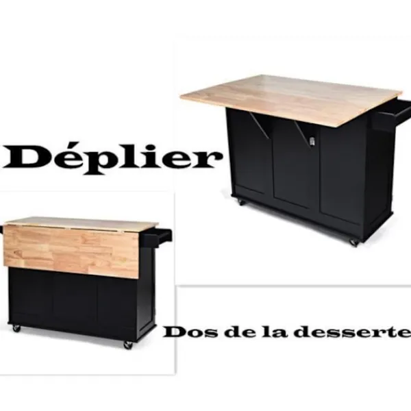Denna COSTWAY köksvagn är utrustad med en stor hopfällbar bänkskiva i gummi, ett skåp med 2 hyllor justerbara i 3 lägen och en avtagbar handdukshängare som även kan användas som handtag. De 4 universalhjulen, varav 2 har bromsar, tillåter stor rörlighet och lätt att stanna.