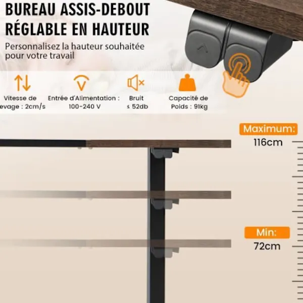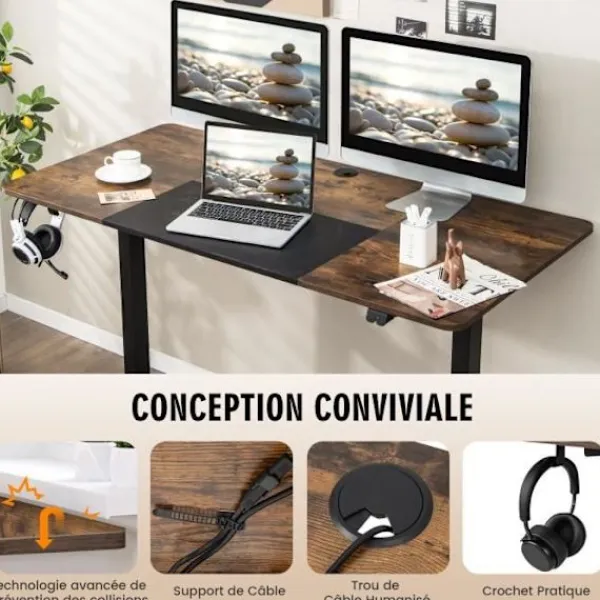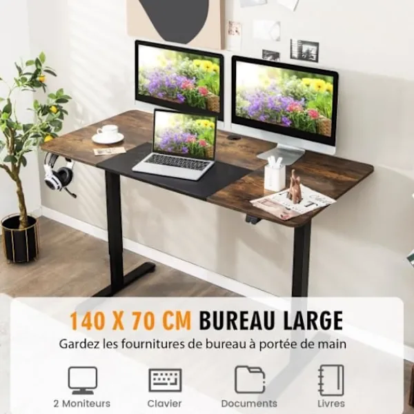 Det höj- och sänkbara elektriska skrivbordet COSTWAY är idealiskt för att arbeta sittande eller stående. Med sina bredare och längre plattformar tillåter den två personer att arbeta samtidigt. Skrivbordet är tillverkat av konstruerat trä och metall, och är utrustat med en tyst motor och en enkel kontrollpanel. Den levereras som en sats med skruvar, fötter och pelare med integrerade motorer.