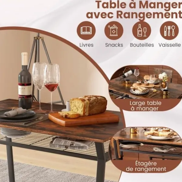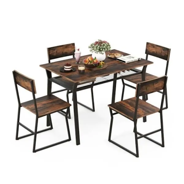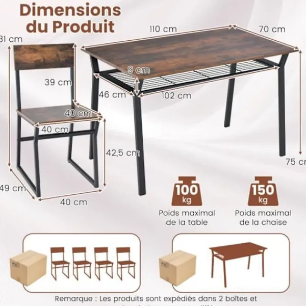 Material: metall, spånskiva Totalmått på bordet: 110 x 70 x 75 cm (L x B x H) Totalmått på stolen: 49 x 40 x 81 cm (L x B x H) Matsalsset 5- styckeset är perfekt för en familjesammankomst Matbordet med förvaringsställ Det något lutande ryggstödet anpassar sig till din kropps kurva. Stolarna kan skjutas in under bordet för att spara utrymme Metallramen med läderbeklädnadspulver är robust och rostsäker