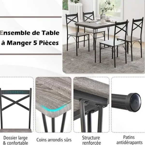 Detta COSTWAY matbordsset innehåller ett rektangulärt bord och 4 stolar. Den robusta pulverlackerade metallramen säkerställer hög stabilitet och stabilitet. Bordet på 110 x 70 x 76 cm erbjuder en stor matplats. Ergonomiska stolar kan förvaras under bordet för att optimera utrymmet.