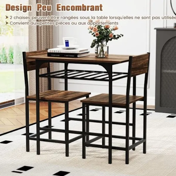 Bli först med att recensera ”COSTWAY Matgrupper>Ensemble Bord och Stolar för Matplats för 2 Personer – Metallram, Brun Hylla” Avbryt svar