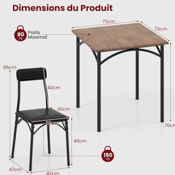 << Bordmått för bordet: 73 x 73 x 76 cm (L x b x H)