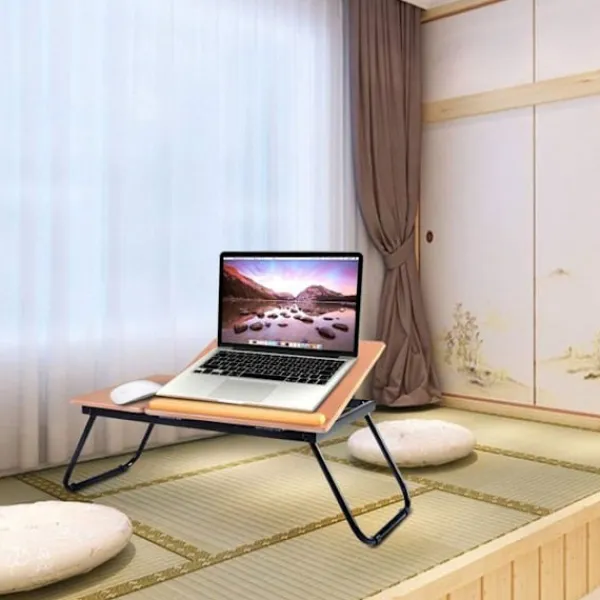 Det är tillräckligt brett för att placera din bärbara dator, mus, kaffe. Vinkeln på brickan kan justeras i 4 nivåer Utrustad med 4 halkfria kuddar Mått: 55x32x23cm Tjocklek på bordet: 1,27cm Fällbart datorbord Bordet är väldesignat överlag och estetisk Du kan använda detta bord utan att installera Vacker tjocklek på toppen har en stor lagringskapacitet