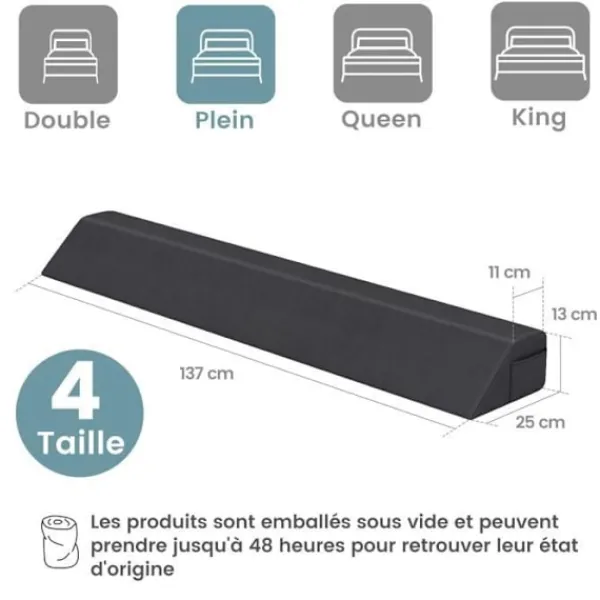 En fast skum med ett effektivt stöd erbjuder hållbarhet > Den högkvalitativa dragkedjan underlättar borttagningen och tvätt av överdraget > Hjälper till att minska spänningar och obehag i ryggen, benen och knäna > 2 sidofickor (13 x 9 cm) för praktisk organisering av nödvändigheter > Fyller ut utrymmen av olika bredder: 0-12,5 cm; 13-15 cm; 15-20 cm > Totala mått: 137 x 25 x 13 cm (L x B x H)