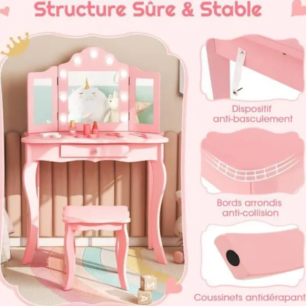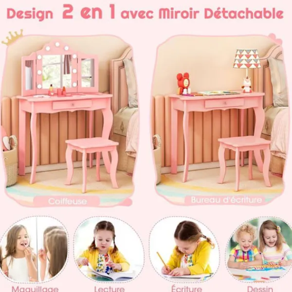 Bli först med att recensera ”COSTWAY Sminkbord>2 i 1 toalettbord för barn med pall, 3-färgad LED-spegel, hopfällbart äkta glas, låda, rosa” Avbryt svar