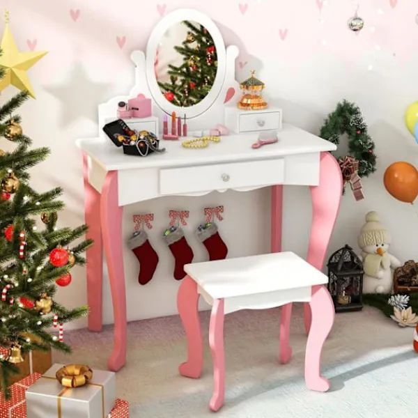 Bli först med att recensera ”COSTWAY Sminkbord>Princess Style Sminkbord för barn med pall med avtagbar 360° vridbar spegel och 3 lådor Vita” Avbryt svar