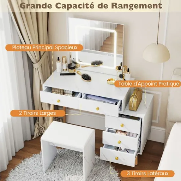 >Breda huvudlådor och sidolådor för att organisera skönhetsverktyg och smycken