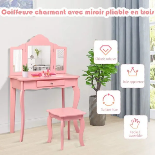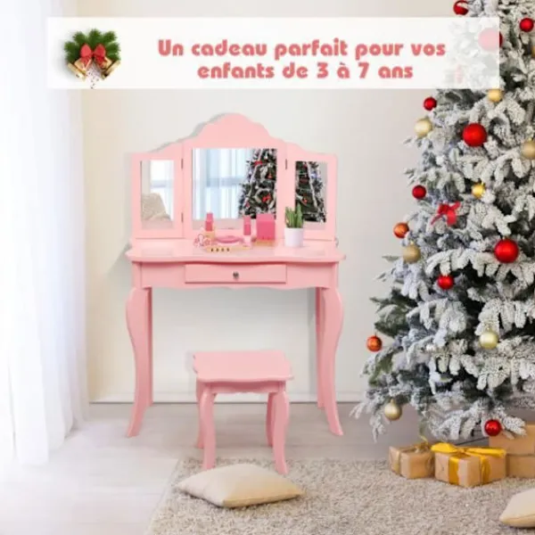 Bli först med att recensera ”COSTWAY Sminkbord>sminkbord för barn med pall, sminkbord med trepanelsspegel och låda, 70 x 34 x 103 CM” Avbryt svar