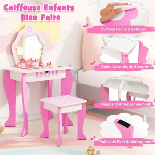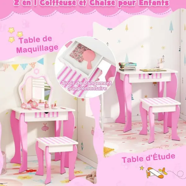 Bli först med att recensera ”COSTWAY Sminkbord>Sminkbord för barn med spegel och träpall – Princess Style Present för tjejer Rosa” Avbryt svar