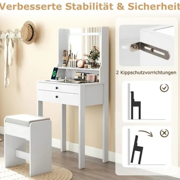 >Stödsystem anti-tipp och halkskyddande fötter för ökad stabilitet.