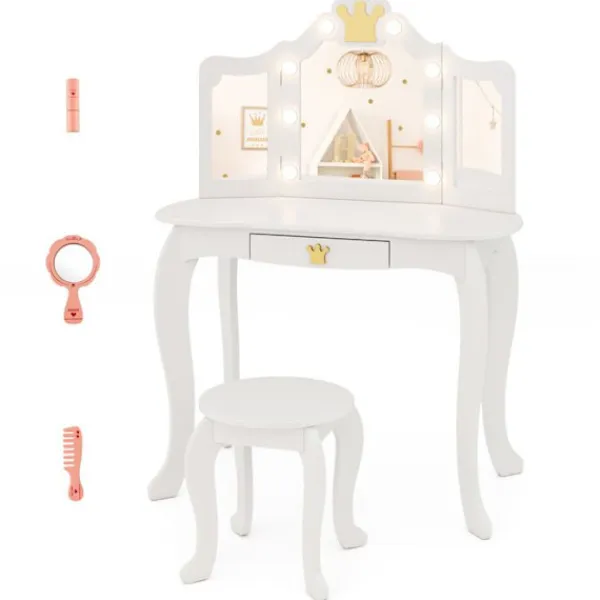 Bli först med att recensera ”COSTWAY Sminkbord>sminkbord och pallset för barn med upplyst spegel, justerbar ljusstyrka, 80 x 40 x 106 cm, vit” Avbryt svar