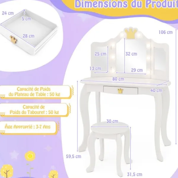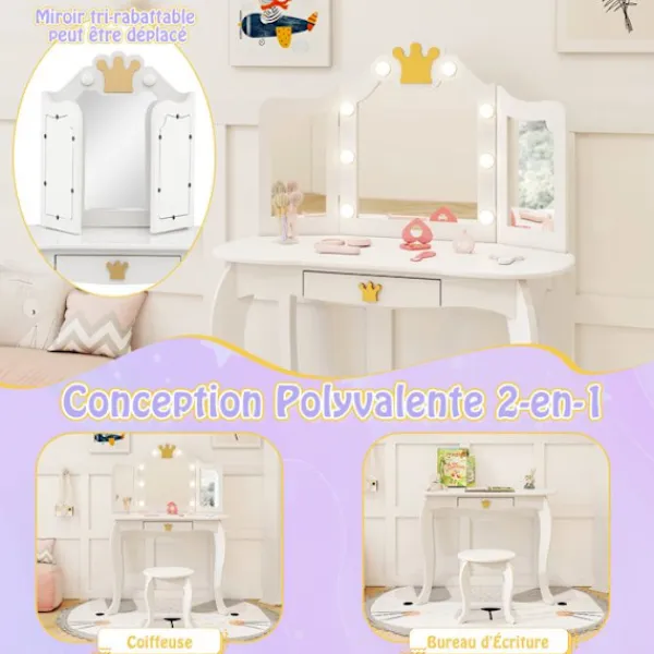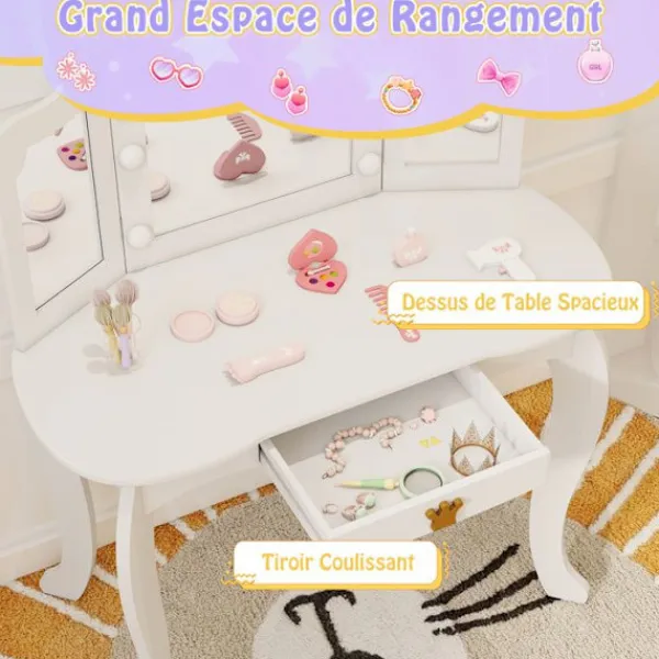 << Avtagbar bricka för dubbel användning: toalettbord eller skrivbord